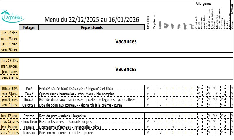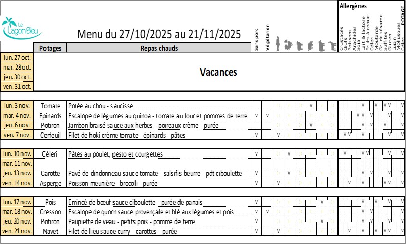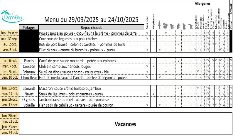Chaque mois, les menus seront affichés dans cette rubrique.